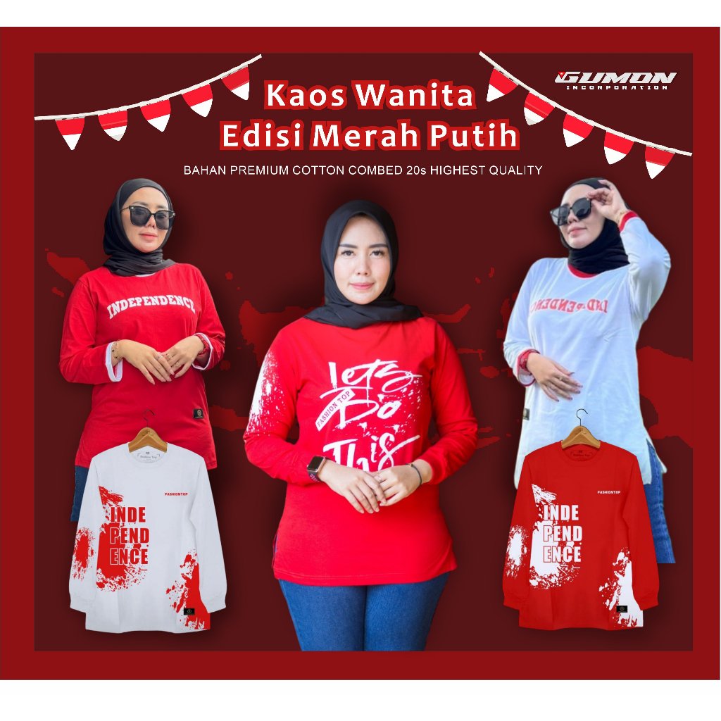 Kaos edisi kemerdekaan Merah Putih Agustusan Model Lengan Panjang Bahan Super Premium Katun Combed 20s Size MXXL