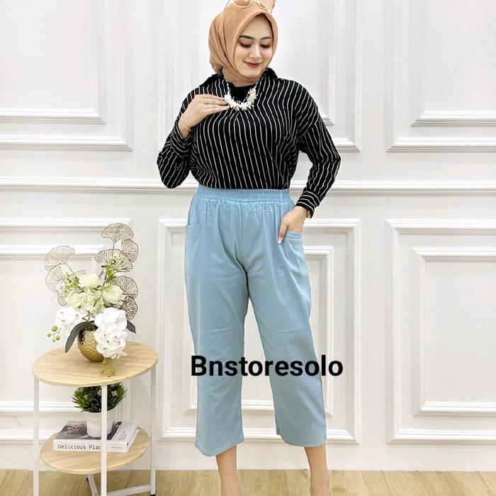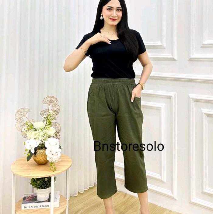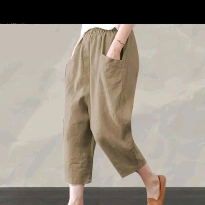 Unqoo Pants Bahan Cotton Twill Size L - Xl - Xxl - Xxxl Celana Panjang Wanita 7/8 Style Pinggang Full Karet - Mocca, L