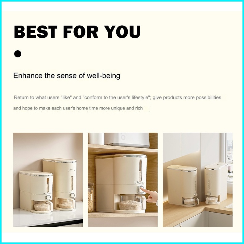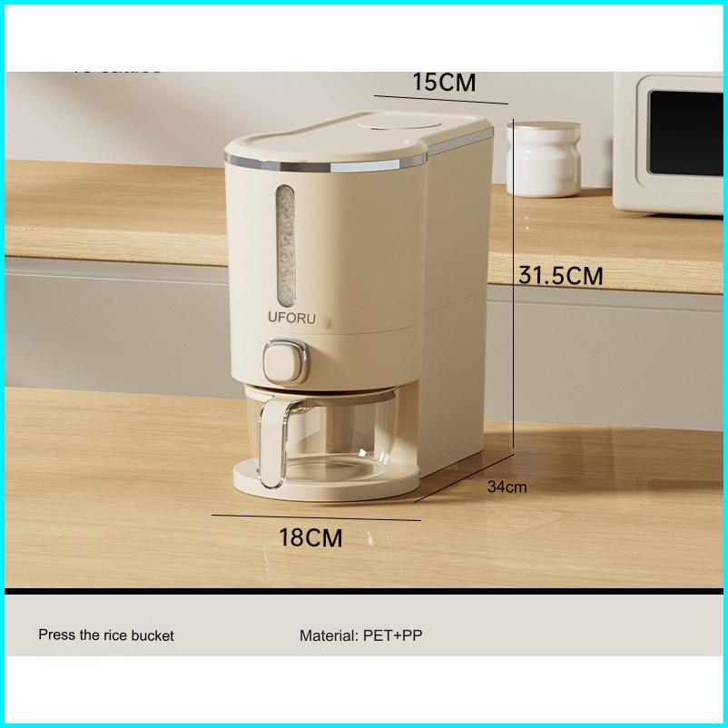 Kitakata Komebitsu Uforu Dispenser Beras 5 Kg Dan 10 Kg Food Grade Seal Rice Bucket Anti Kutu Tempat Wadah Penyimpanan B