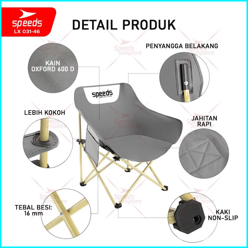 Speeds Kursi Lipat Kusi Bulat Camping Moon Folding Chair Mancing Alam Piknik Outdoor 031-46