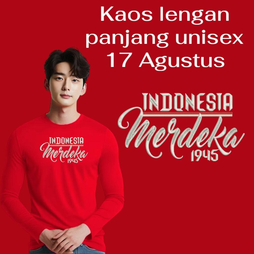 Kaos Merah Lengan Panjang Agustusan Unisex Motif Bordir