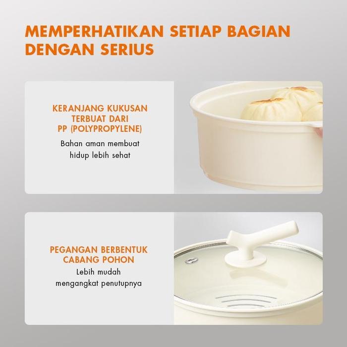 Gaabor Panci Listrik Serbaguna Electric Cooker Anti Lengket Kapasitas 1.5L Kukusan Steamer / GR-N15A