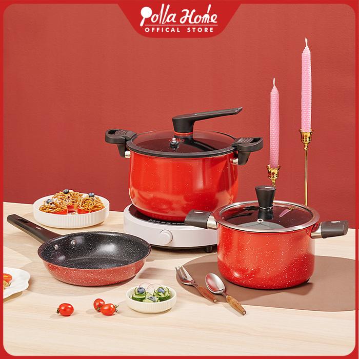 Royalstar 1 Set Isi Panci + Wajan + Presto Serbaguna Tahan Karat Teflon Kitchenware - Merah