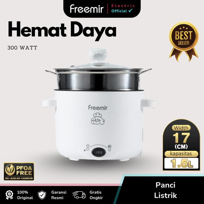 [BARU] freemir Panci Listrik Low Watt Electric Cooker Hemat Daya 300 Watt Multifungsi 1.5 L Steamer Serbaguna Kitchenwar