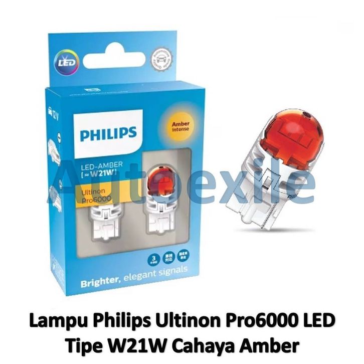 Philips Ultinon Pro6000 LED W21W Amber Jingga Orange Original Lampu Sein Mobil T20 WY21W