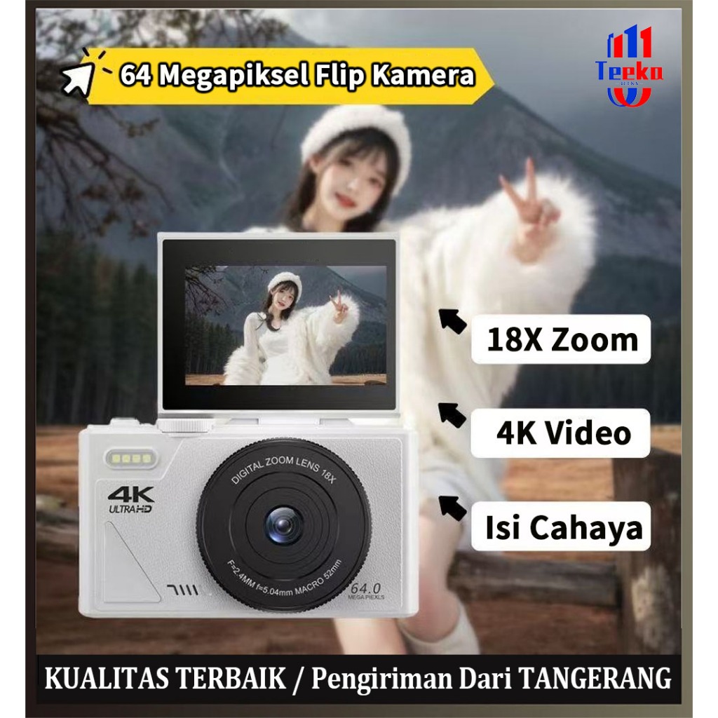 【Dengan Kartu 64GB】TEEKA 75/64MP Digital Camera Wifi Video 5K/4K 18X Digital Zoom Dengan Dukungan Selfie Koneksi WIFI un
