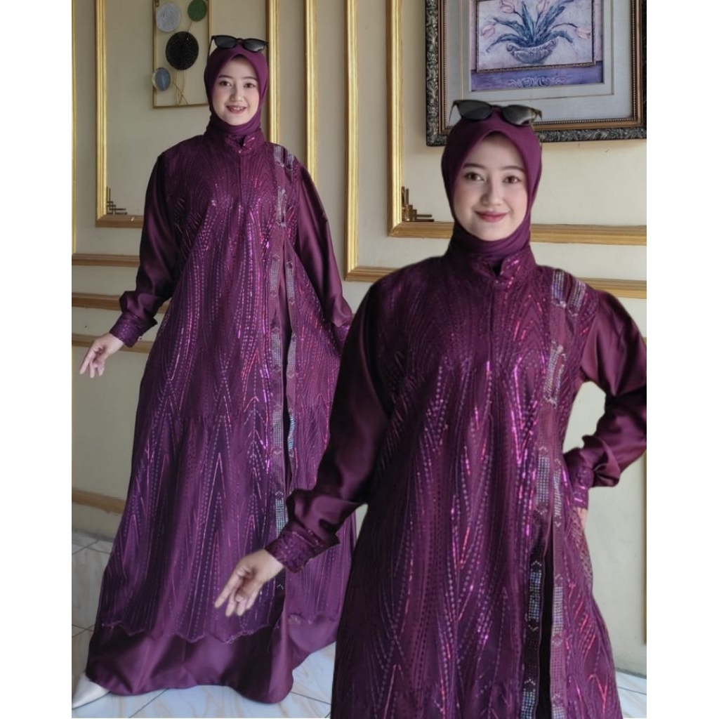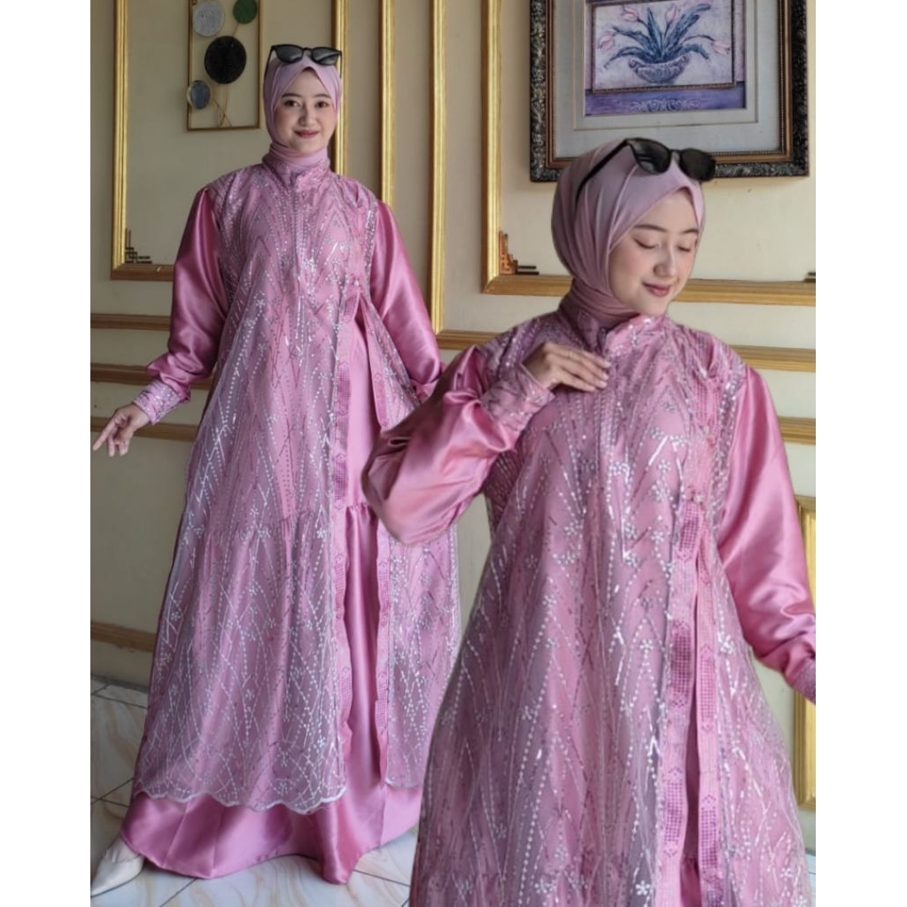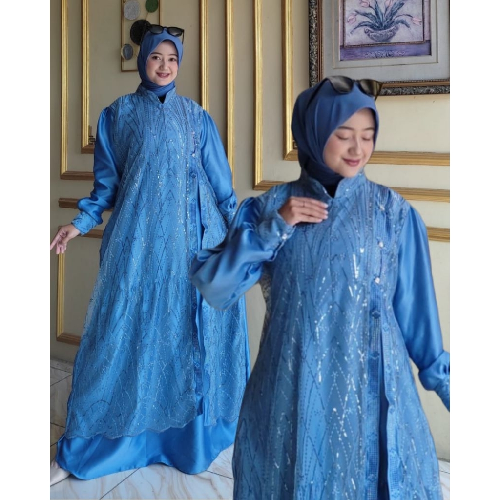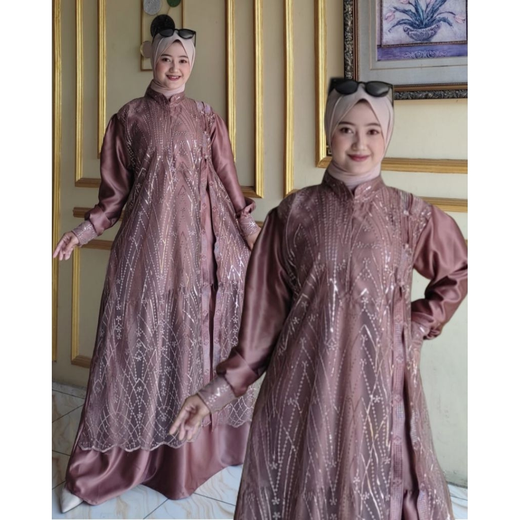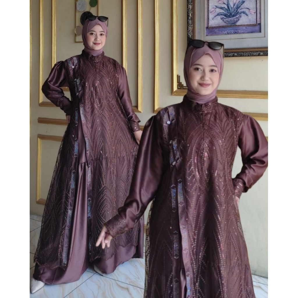 Azza Dress Pesta Brukat Tile Premium Lebaran Gamis Pesta Mewah Baju Kondangan Brukat Gamis Elegan