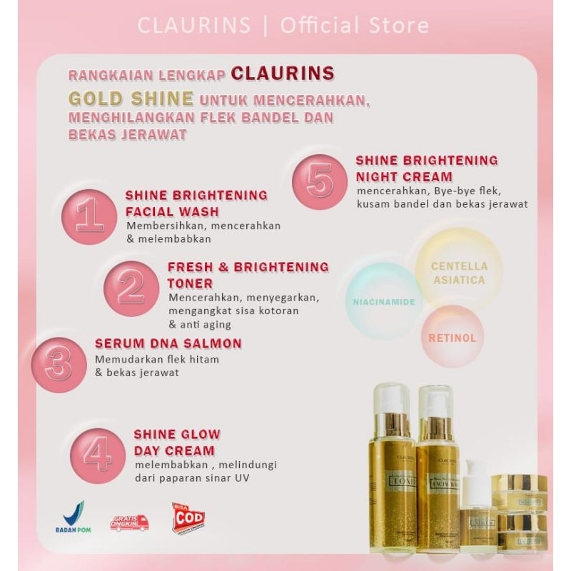 SKINCARE WANITA GLOWING BPOM CLAURINS GOLD SHINE BRIGTHENING CREAM PENCERAH WAJAH
