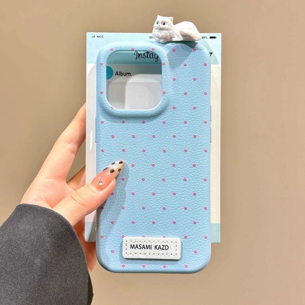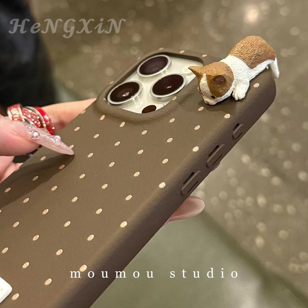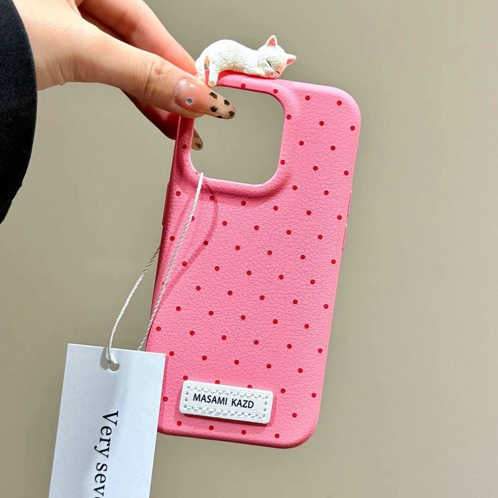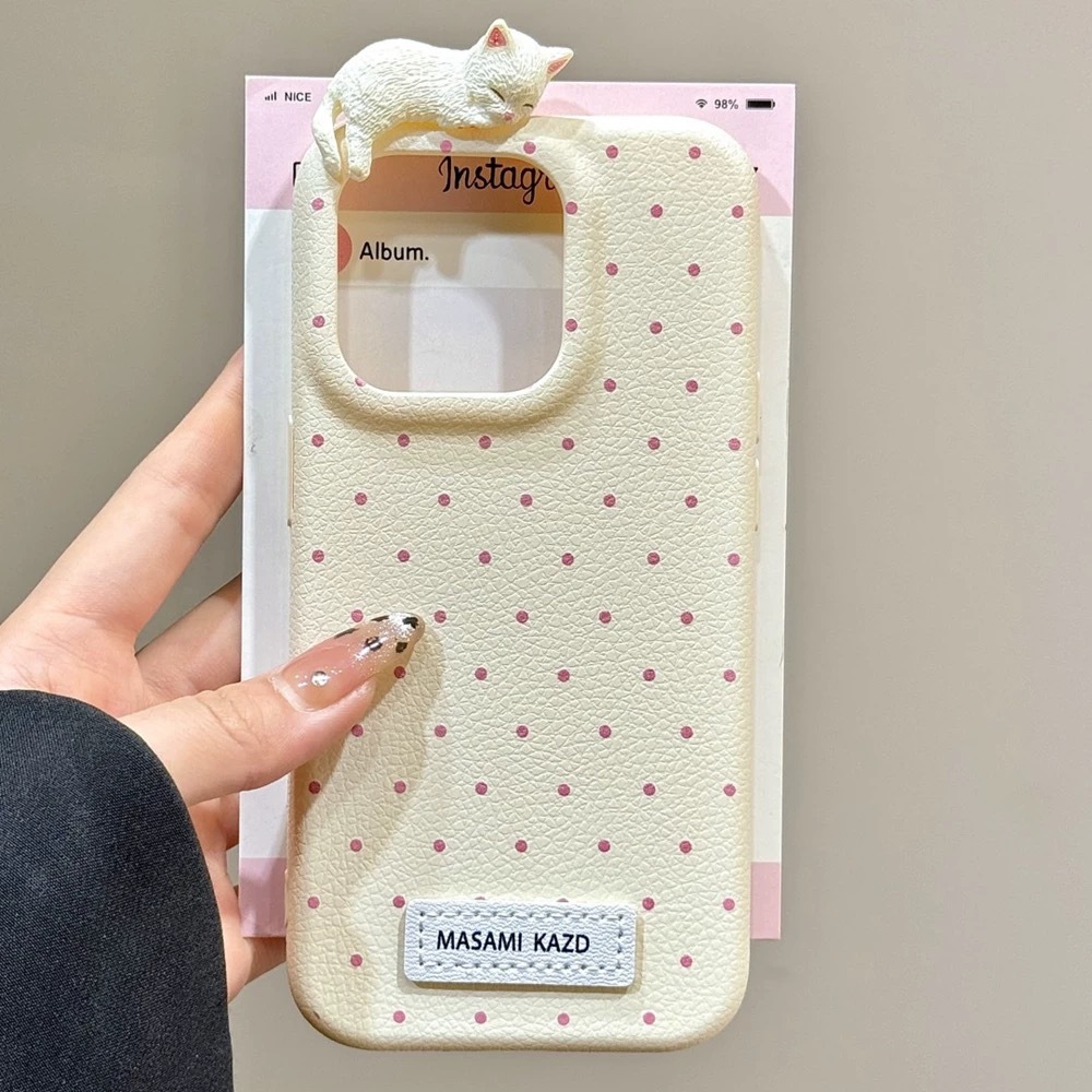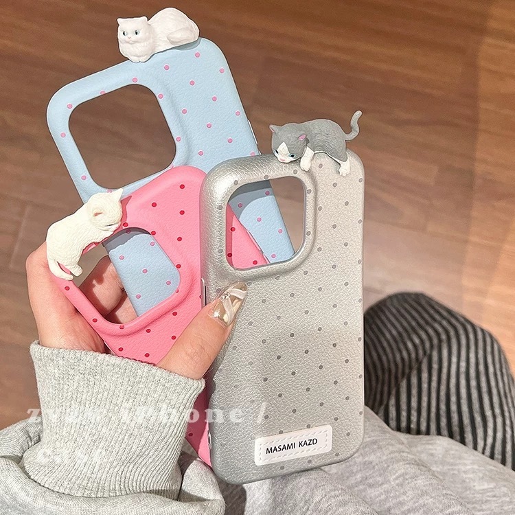 Wave Point Creative Cute 3D Cat Suitable for Apple 16 ProMAX Phone Case 15 Pro Female New 14 Leather 13 Niche 15 ProMAX