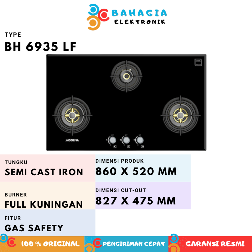 [Star] MODENA BH 6935 LF kompor tanam 3 tungku full kuningan