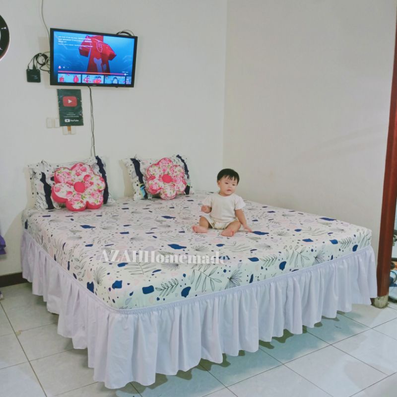 Bed Skirt Polos Model Rempel Tinggi Rumbai 35cm Ukuran Double Penutup Ranjang Divan Kasur Rumbai Keliling