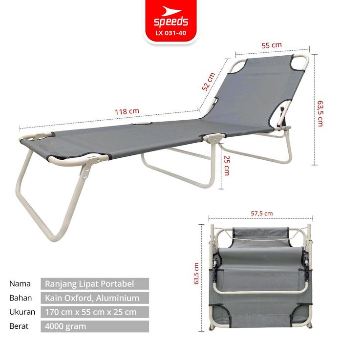 SPEEDS Ranjang Lipat Kursi Malas Tempat Tidur Outdoor Portabel Velbed Indoor Aluminium Lipat Bahan Oxford Berkemah