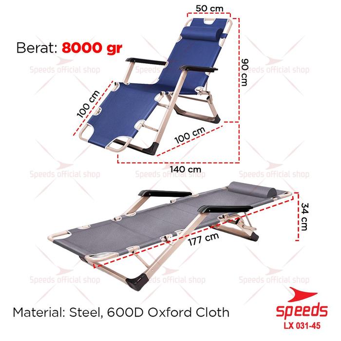 SPEEDS Kursi Lipat Santai Folding Chair Praktis Serbaguna Zero Gravity Furniture Chair Outdoor Indoor LX 031-45 - 031