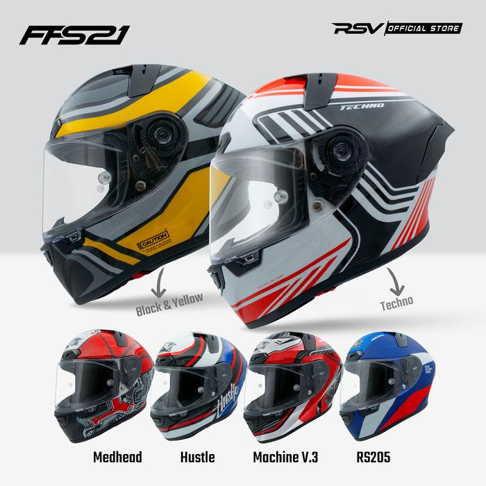 Helm Full Face Rsv Ffs21 Motif Single Visor - All Motif Unisex Sni Dot Ece - Black & Yellow, Sm