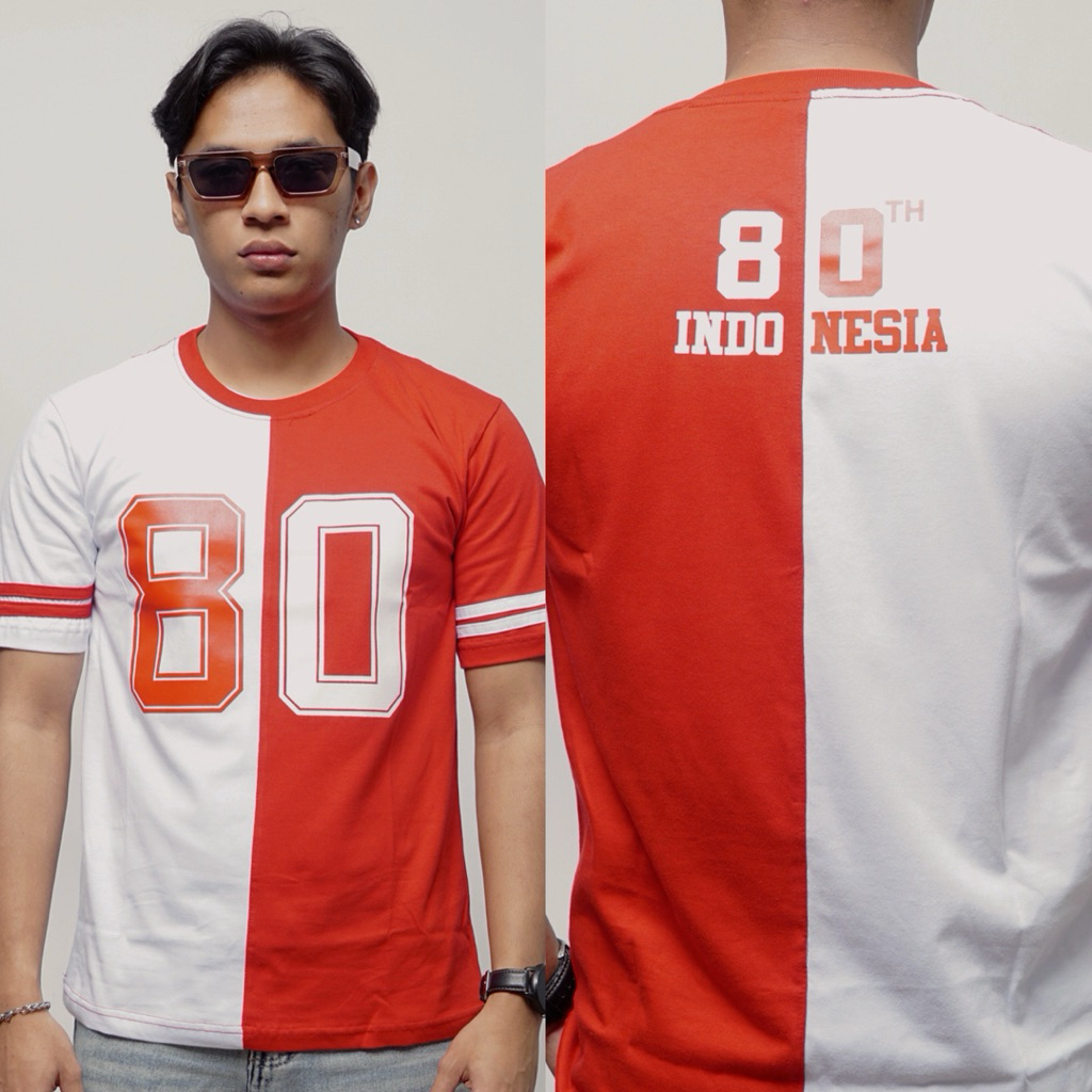 Bossablon - Kaos HUT RI ke 80 Kaos Merah Putih Agustusan Baju HUT RI Kaos Agustusan Pria Wanita