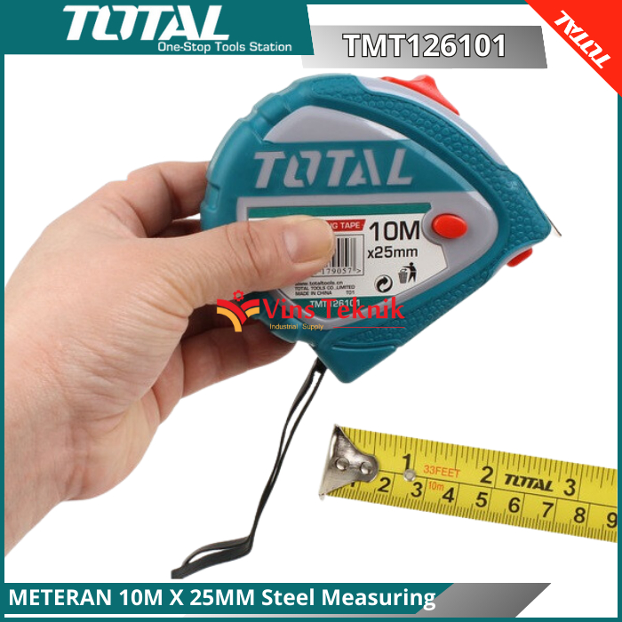 TOTAL TMT126101 METERAN 10M X 25MM Steel Measuring Tape 10 METER