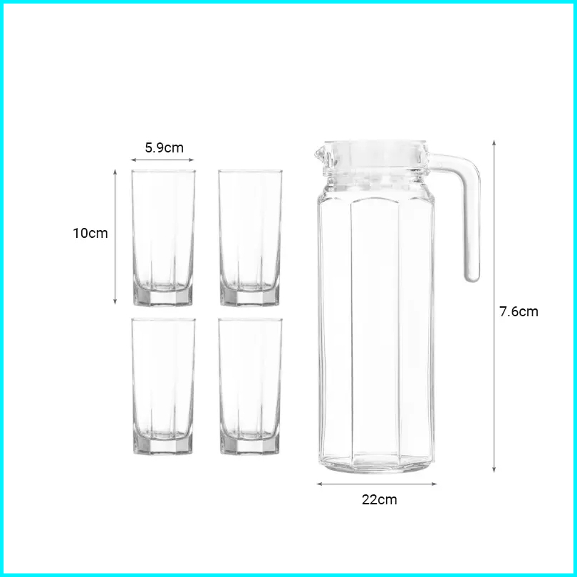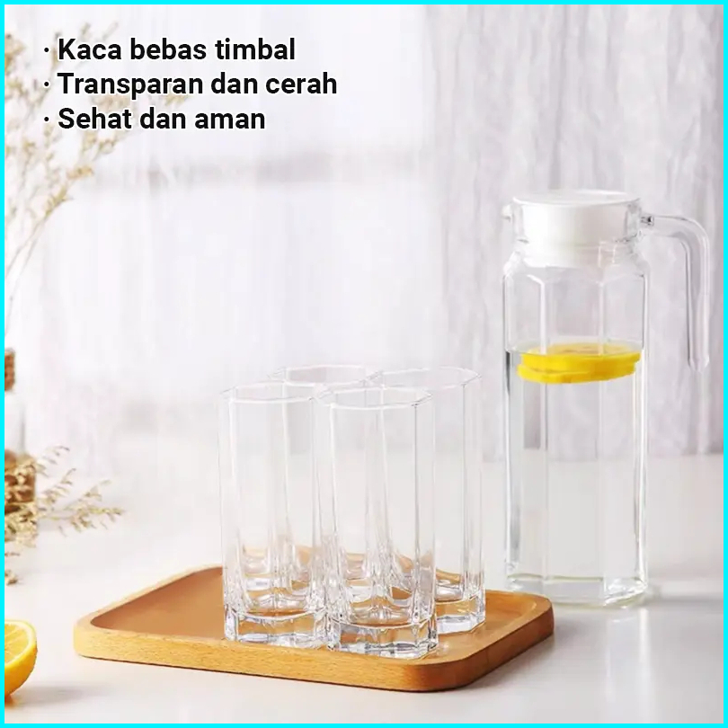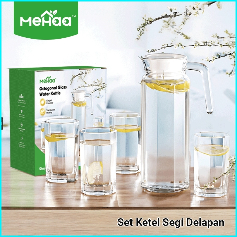 Mehaa Teko Besar 1000ml 4 Cangkir 280ml-set Minuman Segi Delapan Praktis Untuk Acara Sehari-hari