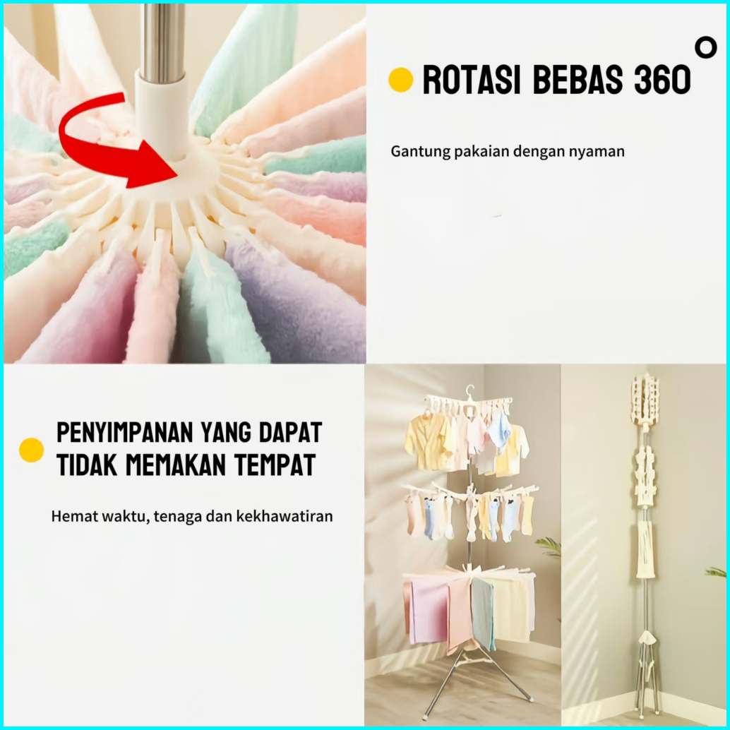 Jemuran Baju Menara 3 Susun Plastik Gantungan Baju Portable Hanger Lipat Pabrik Menjua