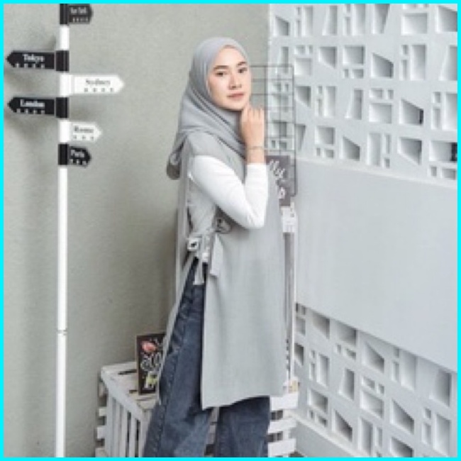 Outer Rompi Long Tunik Vest Rajut Tali Wanita