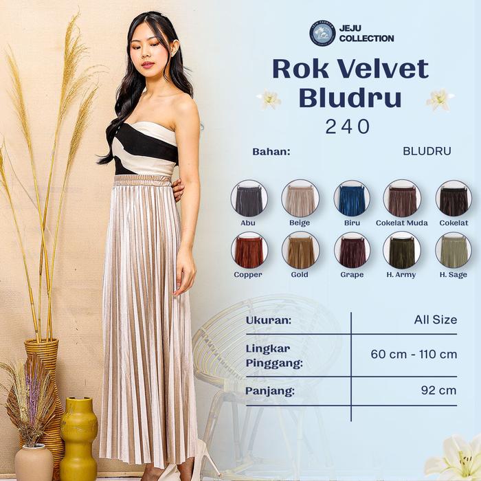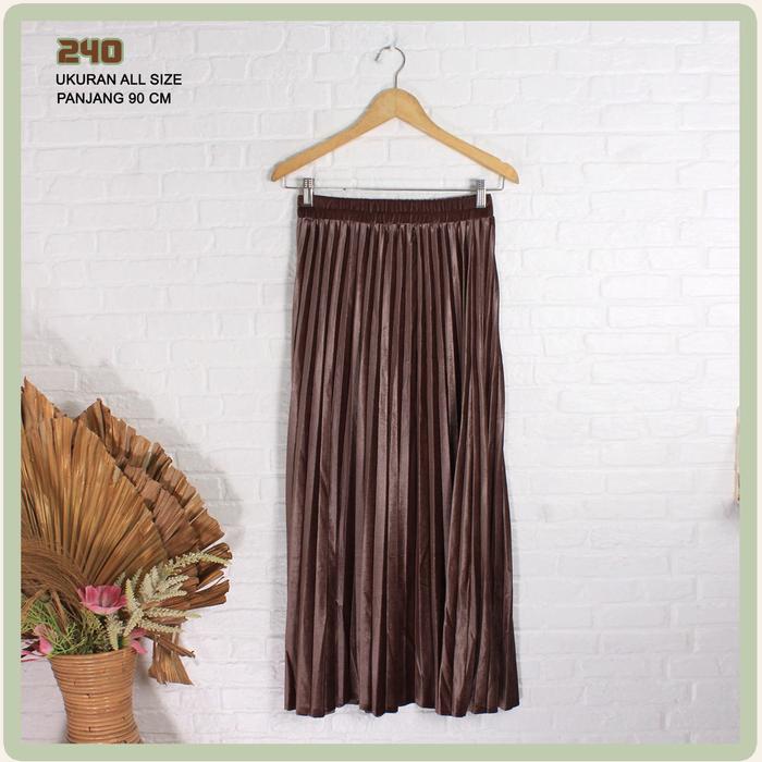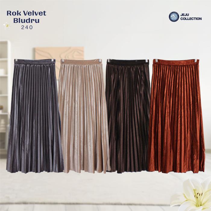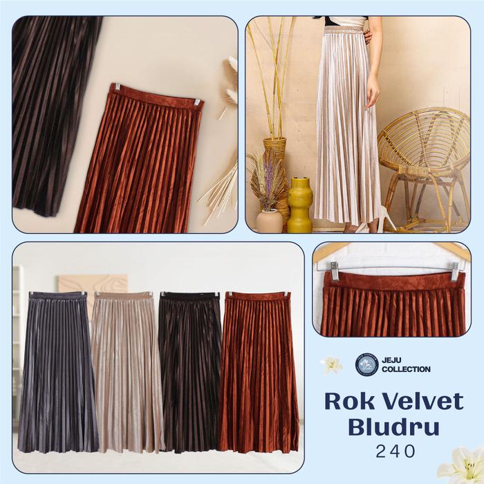 Rok Wanita Velvet Bludru Plisket Polos Shiny Premium Import 22 Warna - 240 Wanita - G0Ldd, All Size