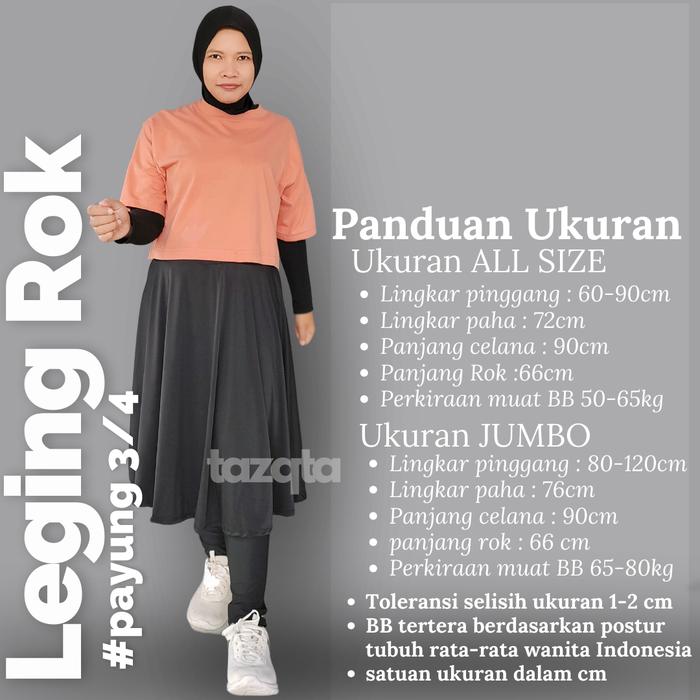 Tazqta Legging Rok Olahraga Wanita Muslimah Panjang Dibawah Lutut Sporty - Hitam, Standar