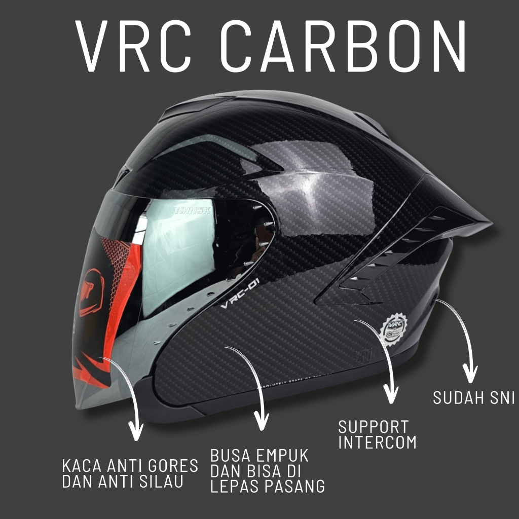 Helm VRC X Racer Carbon Half Face – SNI, Visor Panjang, Busa Nyaman | Gallery Helm Tasikmalaya