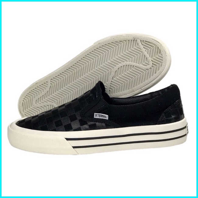 Xternalstepsure - Sepatu Slipon Unisex Cruas Grey Chekerboard Casual Pria Wanita