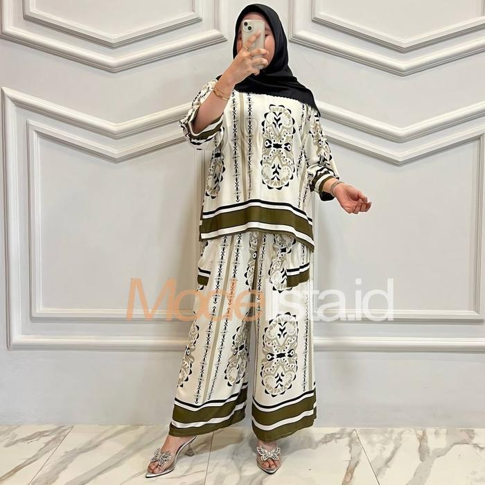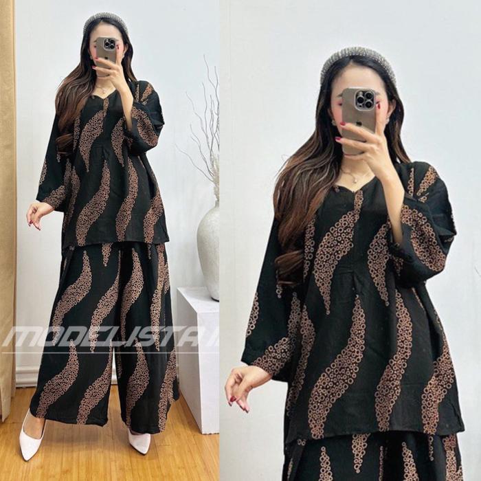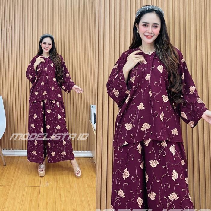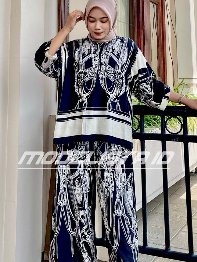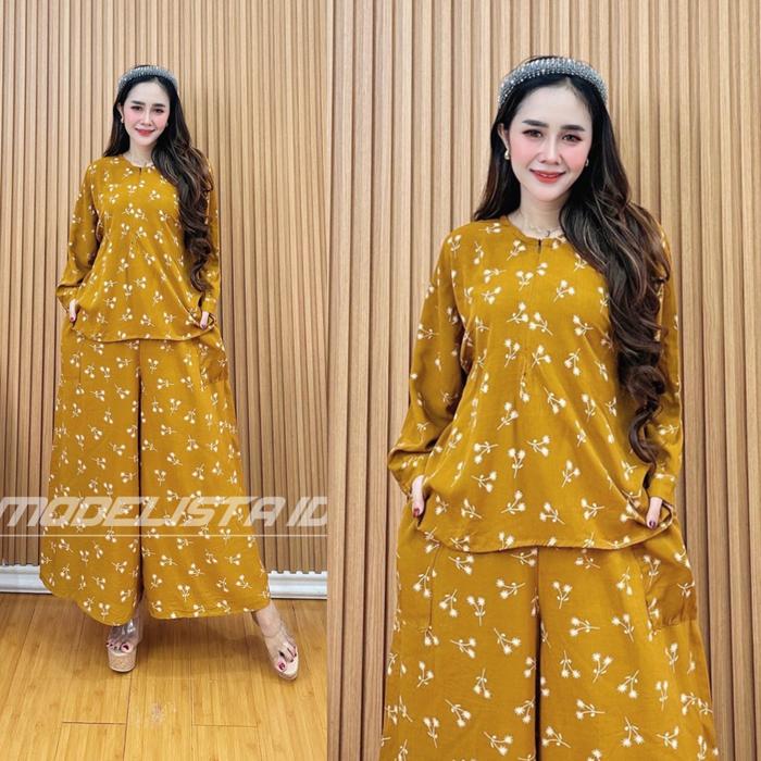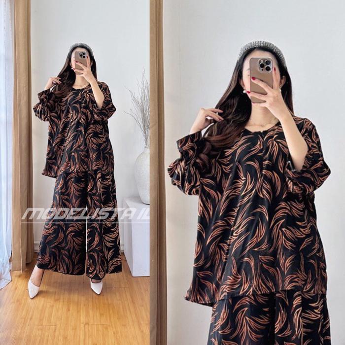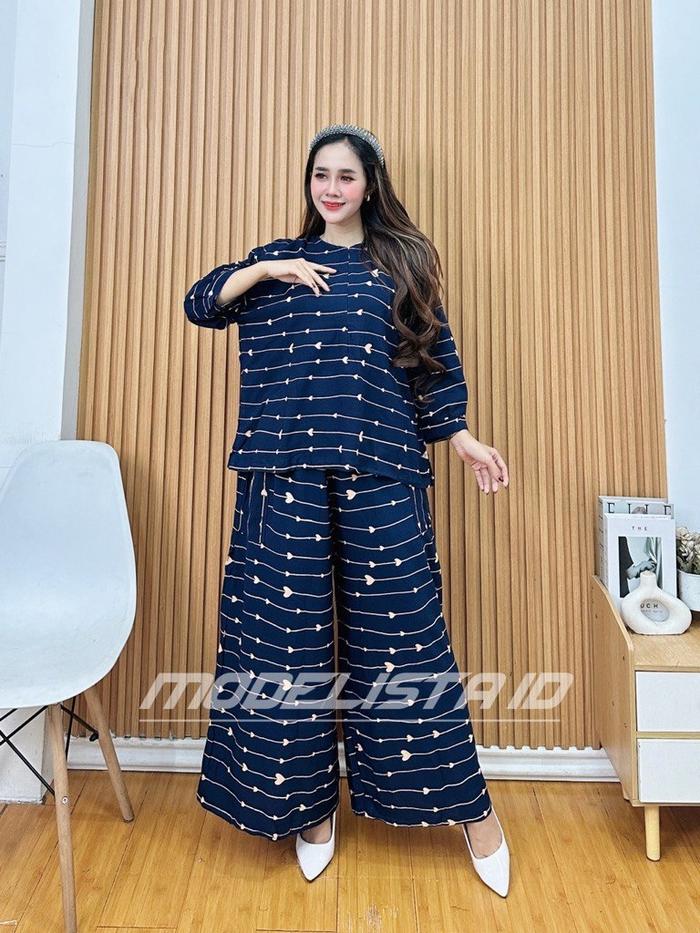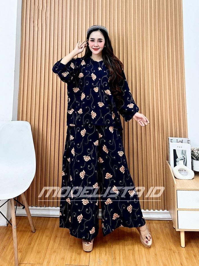 Nabila Oneset Setelan Baju Wanita Jumbo Ld 130 Bahan Rayon Motif Resleting Depan Busui By Modelista - Naila, Standar Ld