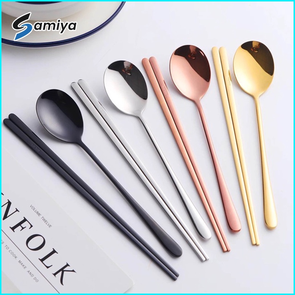 Sendok Sumpit Korea Stainless Chopstick Spoon Korea Sujeo Set Korea Free Kotak Box Terima Custom Print Nama Dan Logo