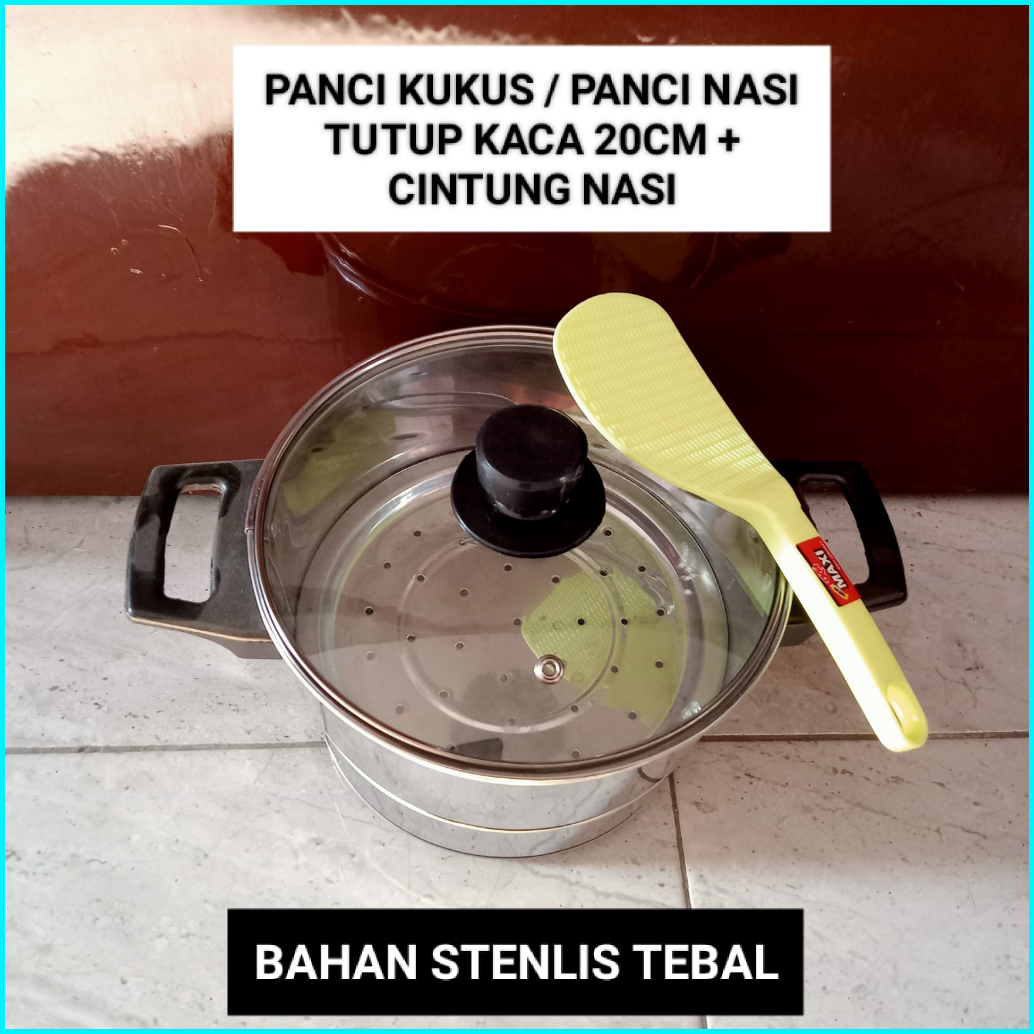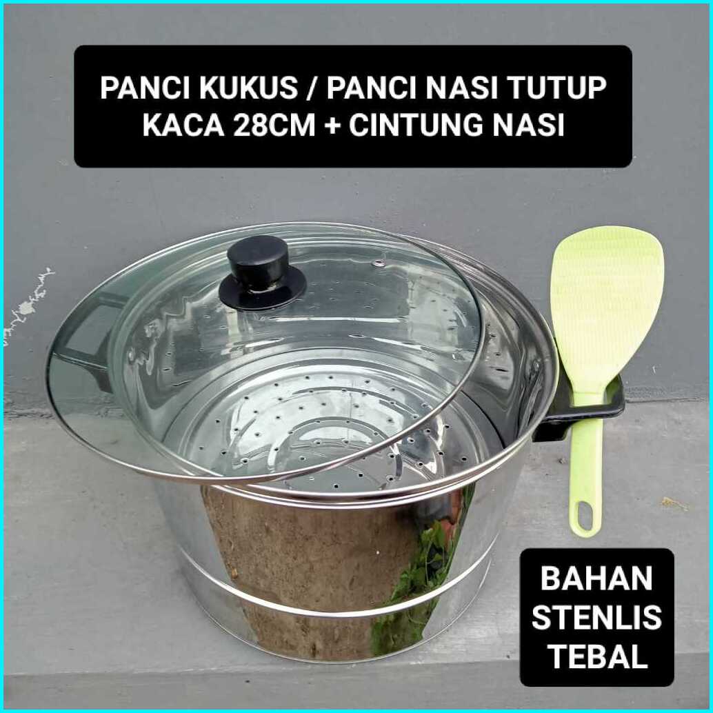 Panci Kukus Bahan Stenlis Tutup Kaca Ukuran 18 20 22 24 26 28cm Free Cintung Nasi