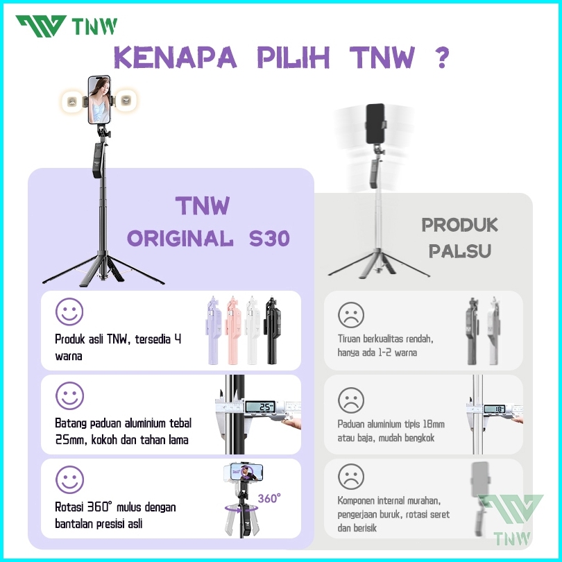 Tnw S30 Tongsis Tripod Bluetooth 1.8m Fill Light Tongsis Tripod Remote Tongsis Hp Selfie Stick Bluetooth 4in1 Tongsis Gi