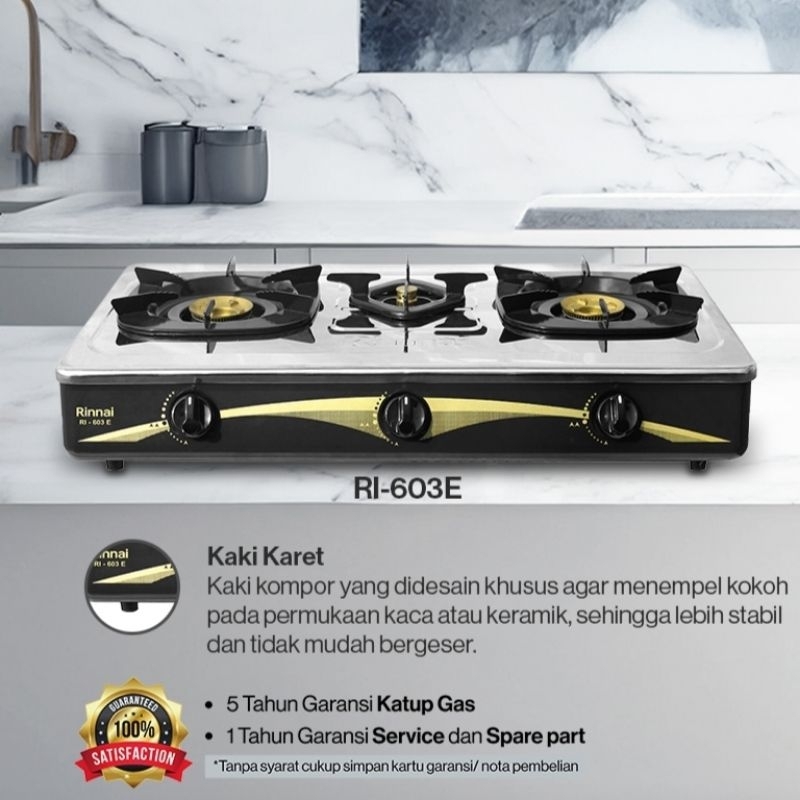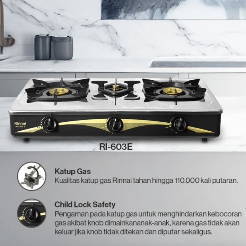 [Star] Kompor Gas RINNAI RI603e 3 Tungku Body Stainless / Kompor 3 Tungku Rinnai Ri603-E