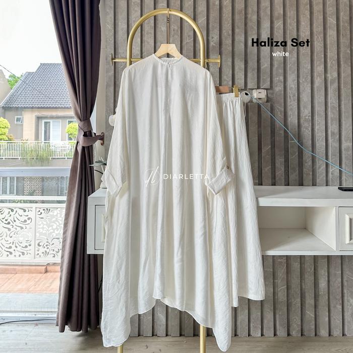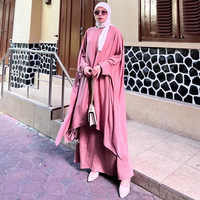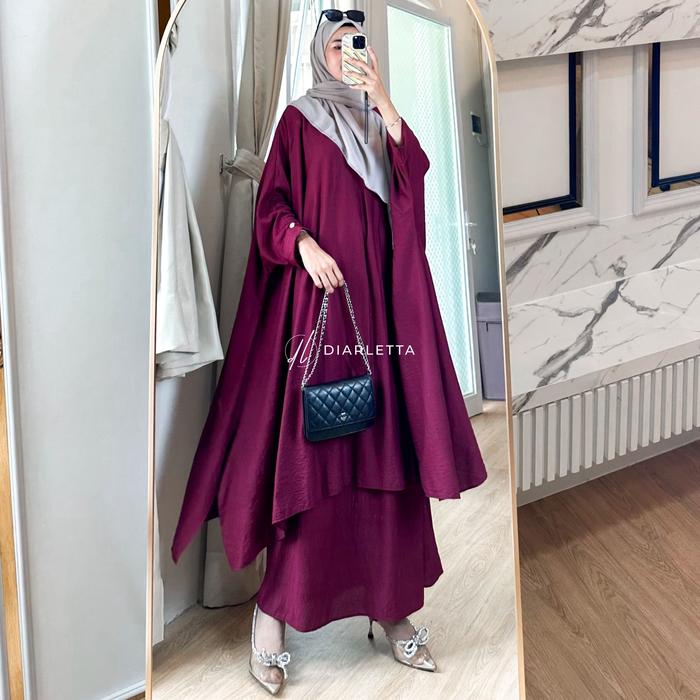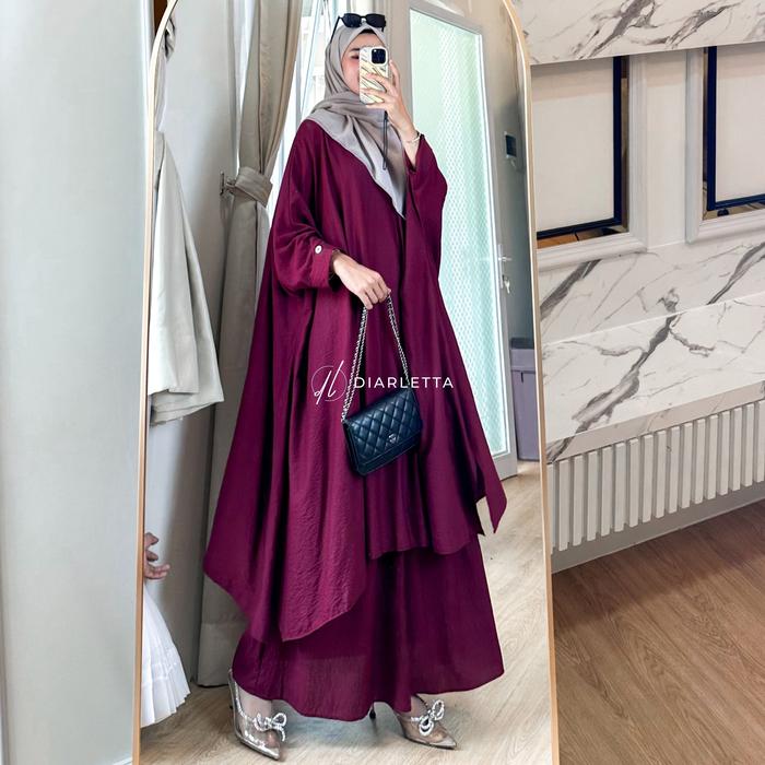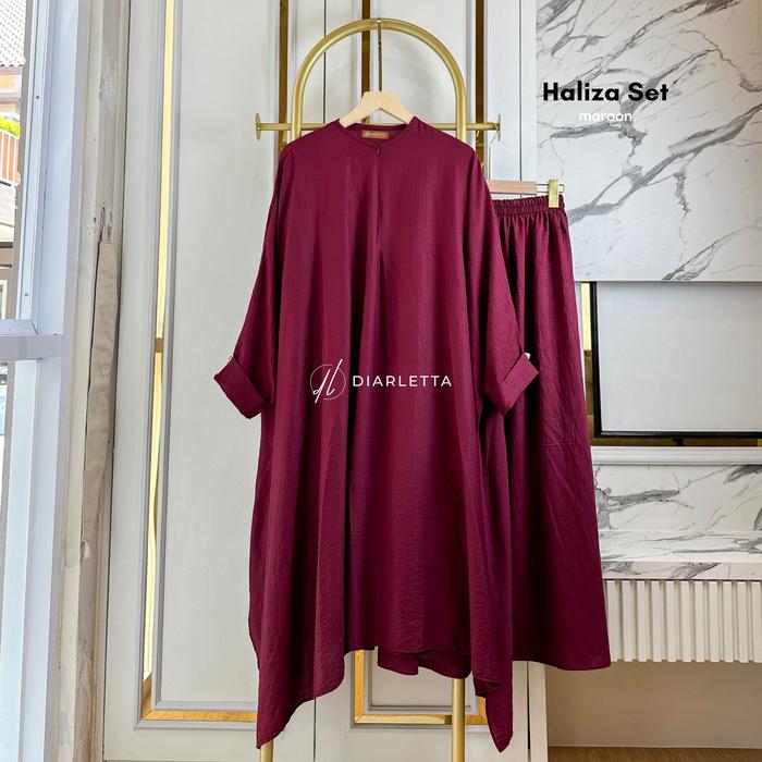 Haliza Set Rok Abaya Malayu Batwing Busui Polo Linen Set Daily By Diarletta - Maroon