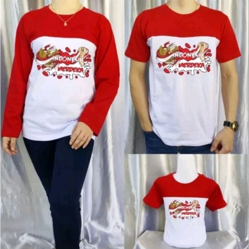 KAOS MERAH PUTIH HUT RI KE 80 BAJU MERAH PUTIH MOTIF GARUDA INDONESIA kode 002 MERDEKA BISA COUPLE