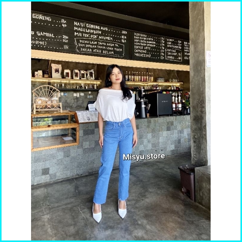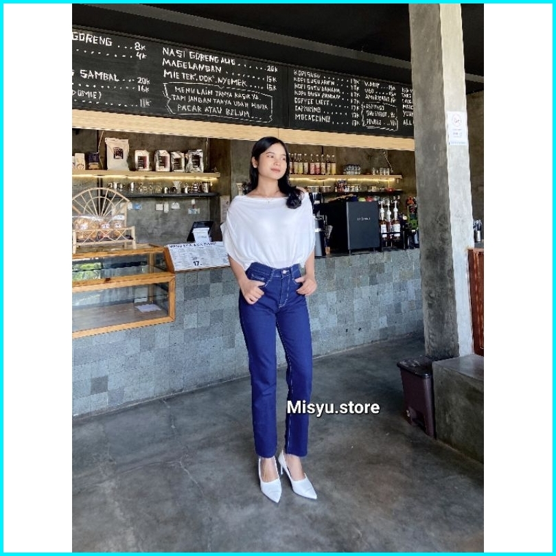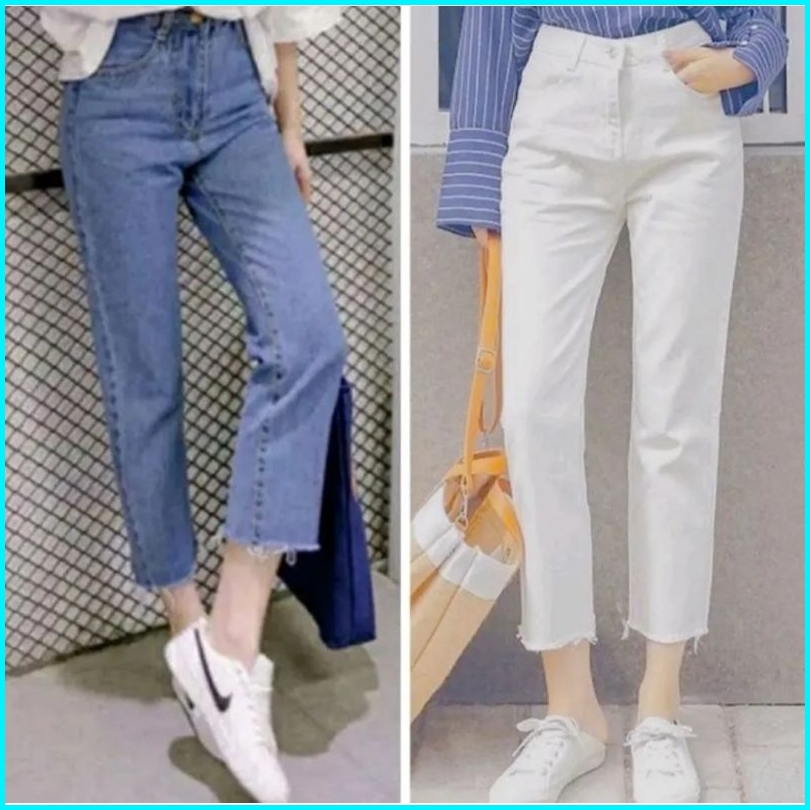 Lesley - Boyfriend Unfinished Jeans Kekinian Hw Jeans Celana Highwaist Jeans High Waist Jeans Wanita Rawis Denim