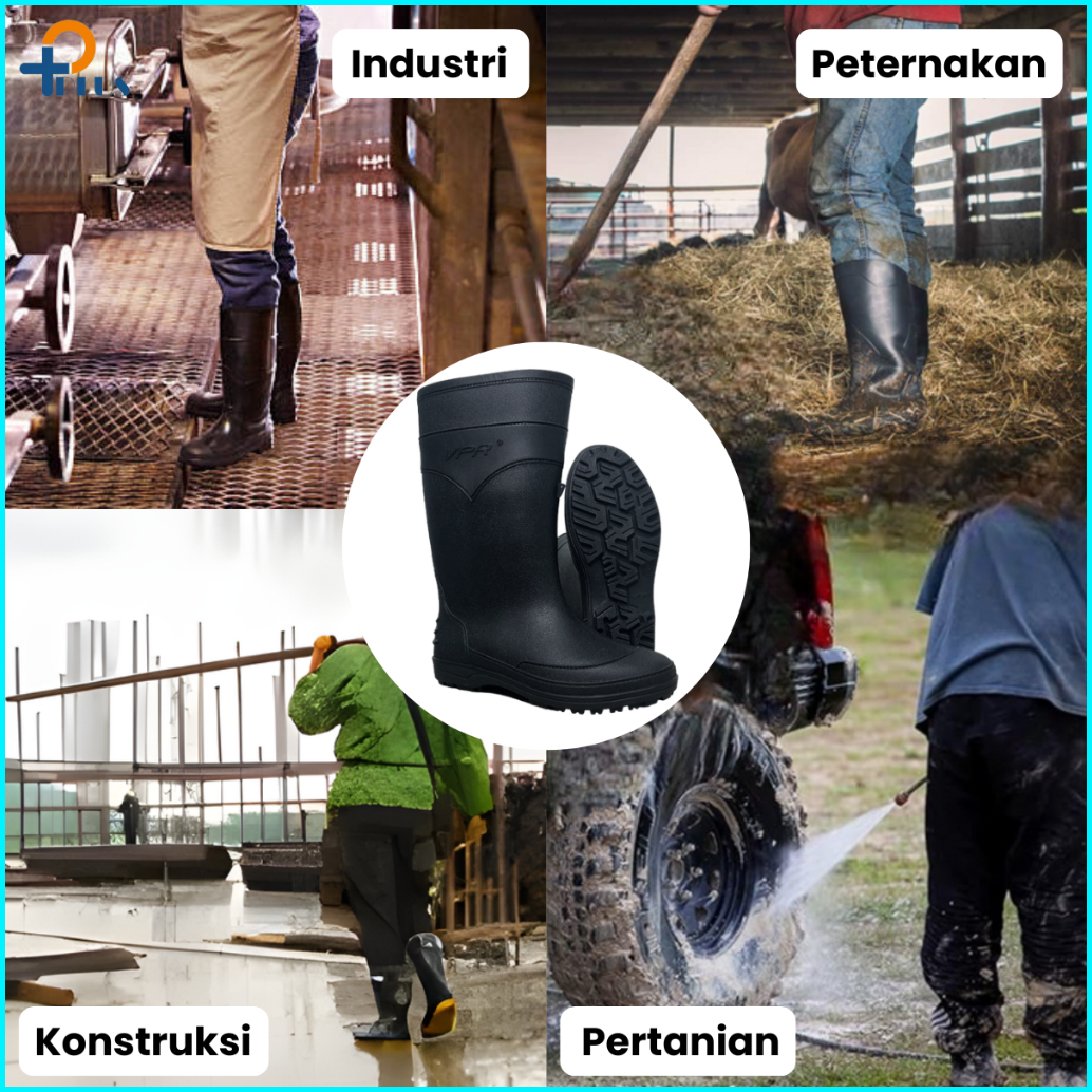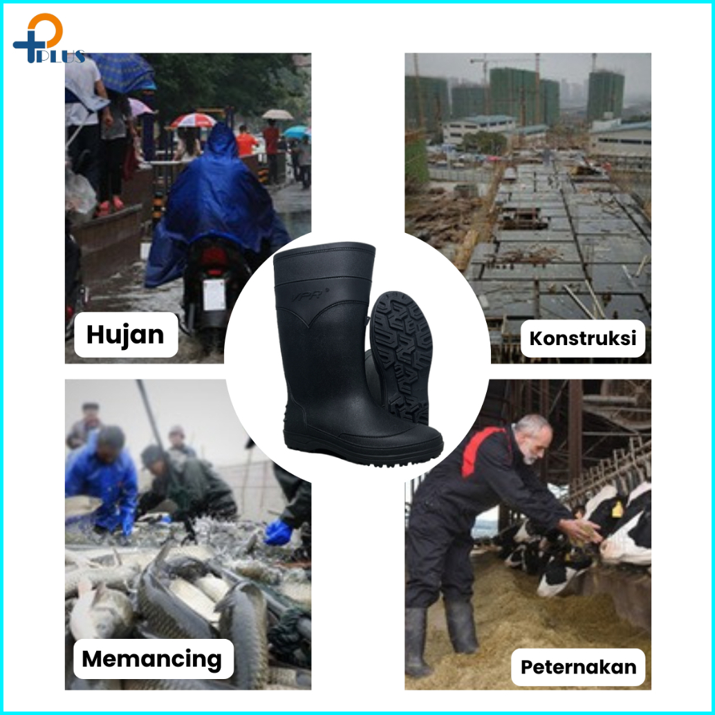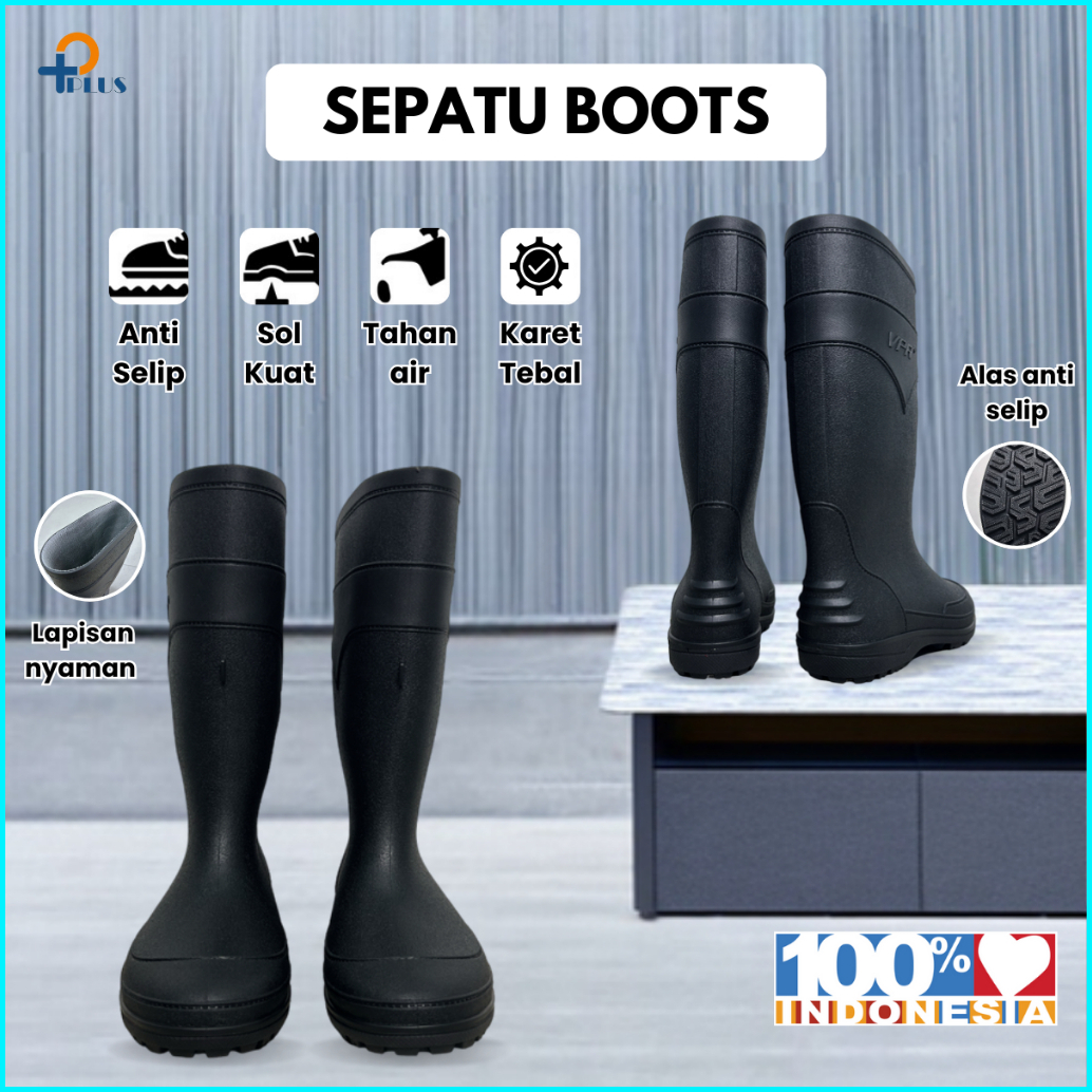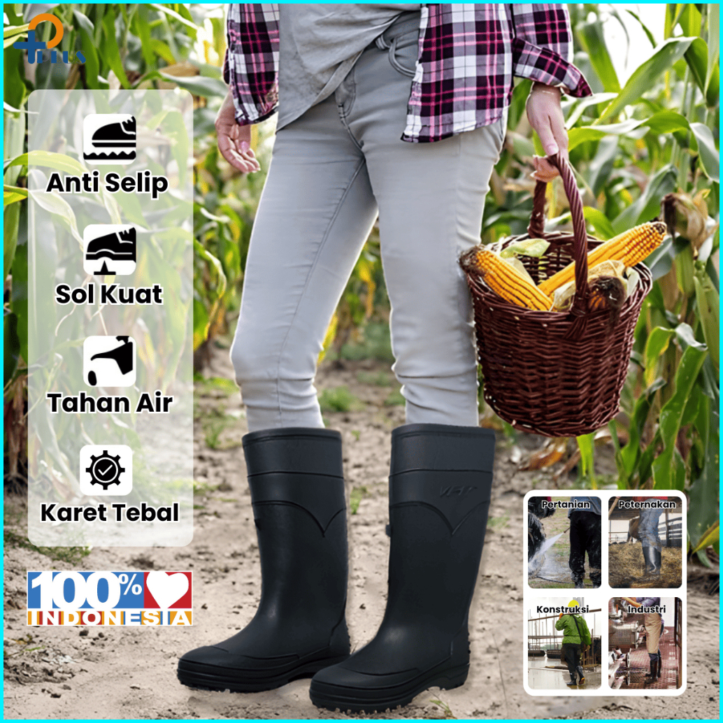 Pplus Sepatu Boot Tinggi Hitam Boots Karet Lokal Lentur Anti Air Slip Perkebunan