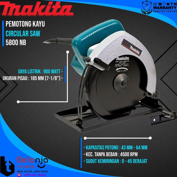 Makita Mesin Potong Kayu 5800 NB 7 Inch 900 Watt Circular Saw 5800NB