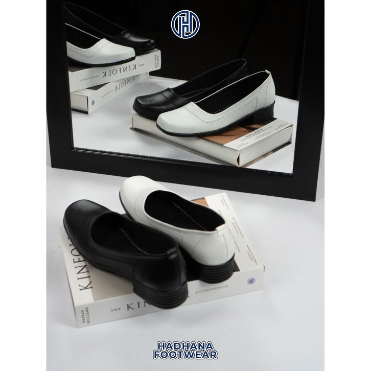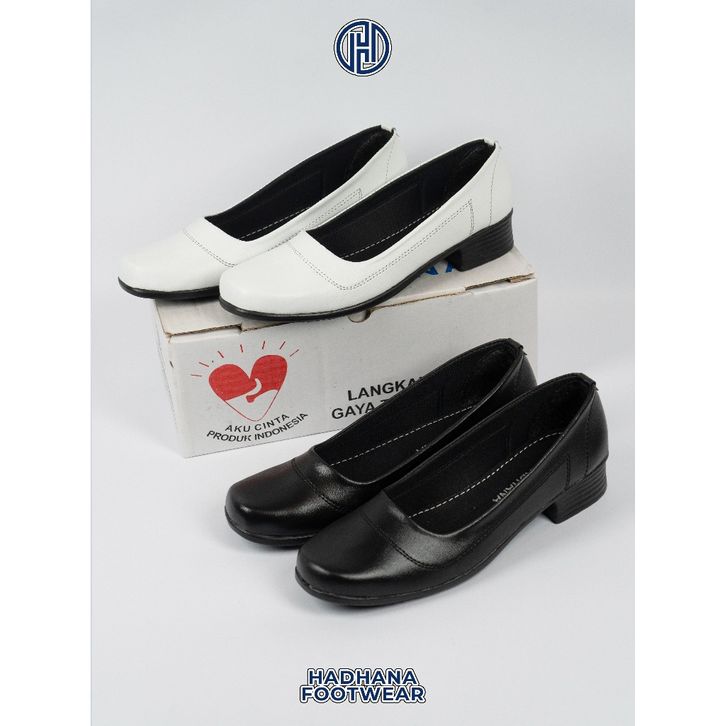 BARU Hadhana Sepatu Guru Wanita Pantofel Hitam Hak 3 Cm efalk