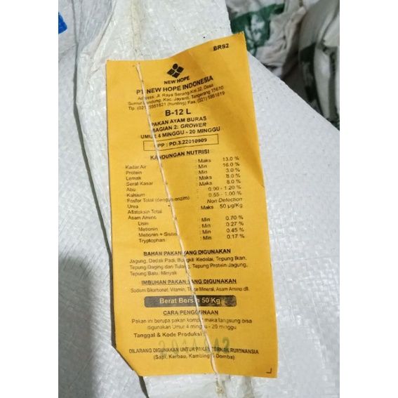 Pakan Ayam Buras /9rower B12L Full 1 karung 50 Kg