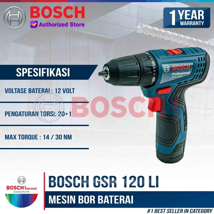 Bosch Bor Drill Cordless GSR 120 LI GEN 3 Mesin Obeng Baterai 12V FREE Mata Bor & Obeng