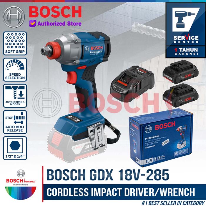 Bosch Mesin Impact Wrench Cordless GDX 18V-285 Li Charger Baterai Procore Set 4 AH - 1 Baterai