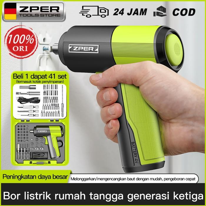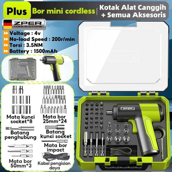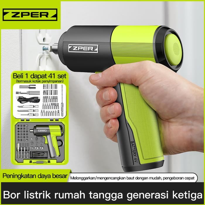 ZPER 1500mAh Mesin Bor Baterai 4V Obeng Listrik Cordless Drill Battery Bor Kayu Triplek Besi Bor ZP016 Torsi - Plus-Kota