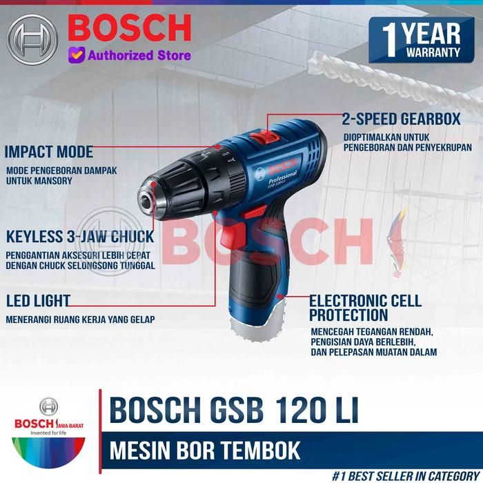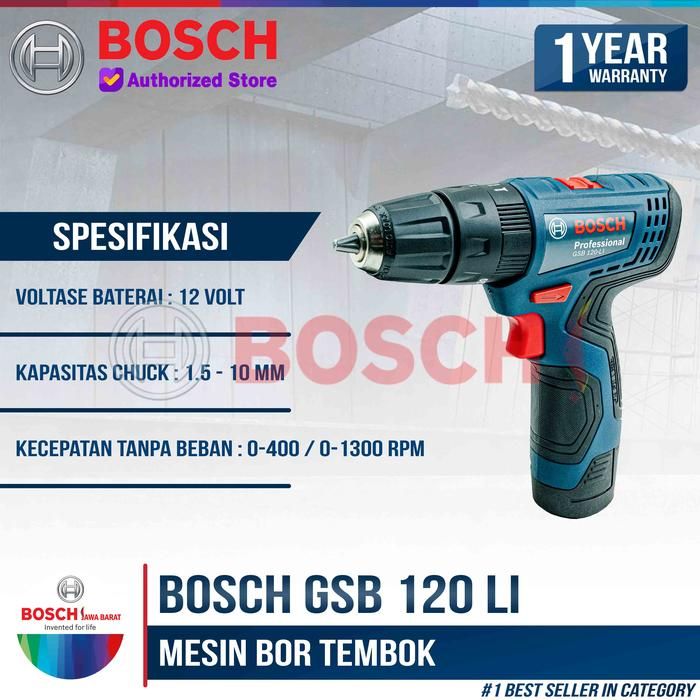 Bosch Bor Tembok Baterai GSB 120 LI GEN 3 Cordless Impact Drill 12V - 1 Baterai