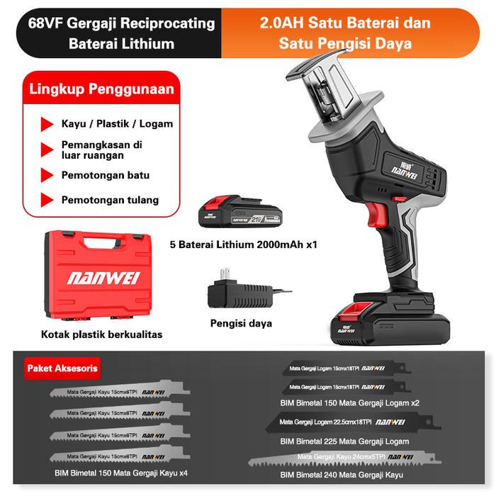 Gergaji portabke/Cordless Reciprocating Saw Gergaji Elektrik Portable Genggam Lithium Charger Gergaji Mesin - 68VF Satu