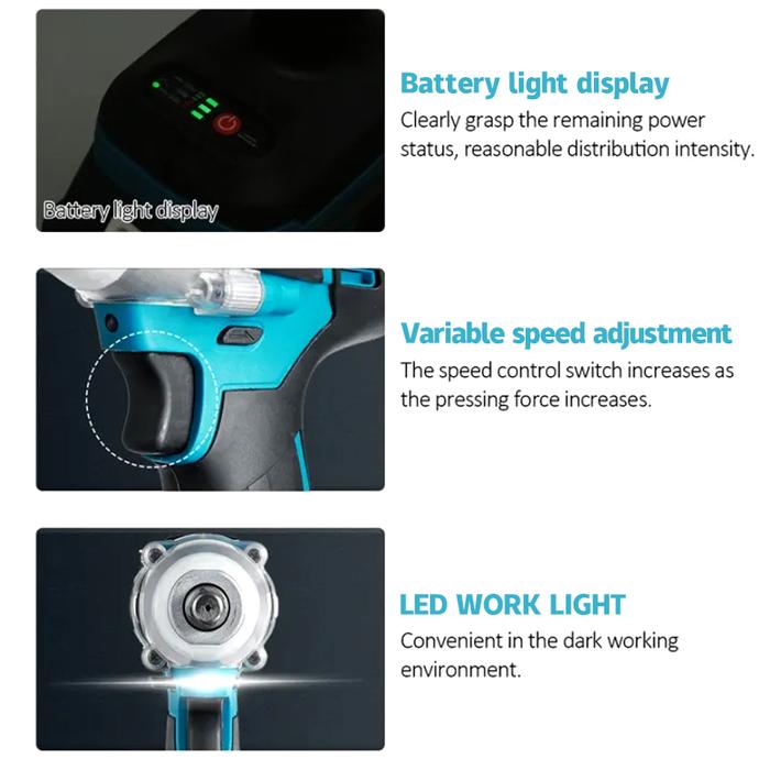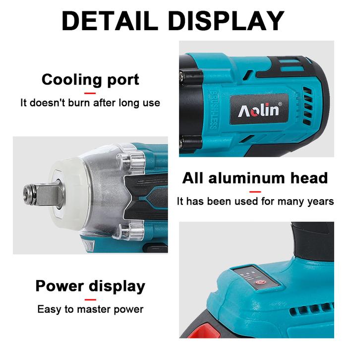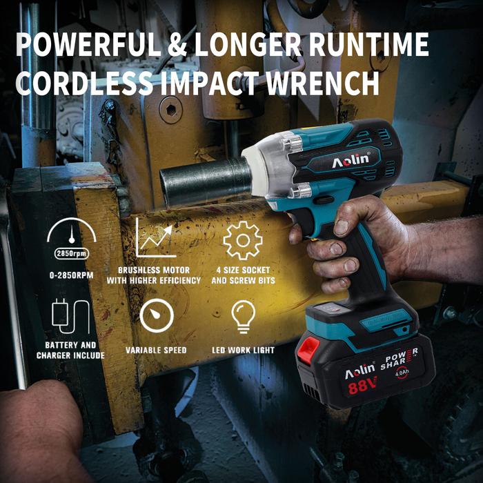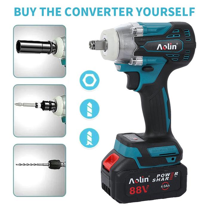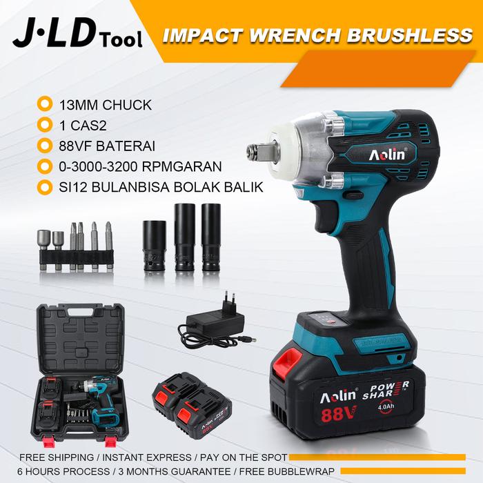 AOLIN Cordless Impact Wrench Brushless 500NM 88VF Bor Baterai Impact 2 Baterai Spanner Sets diy multicolor kunci pas lis