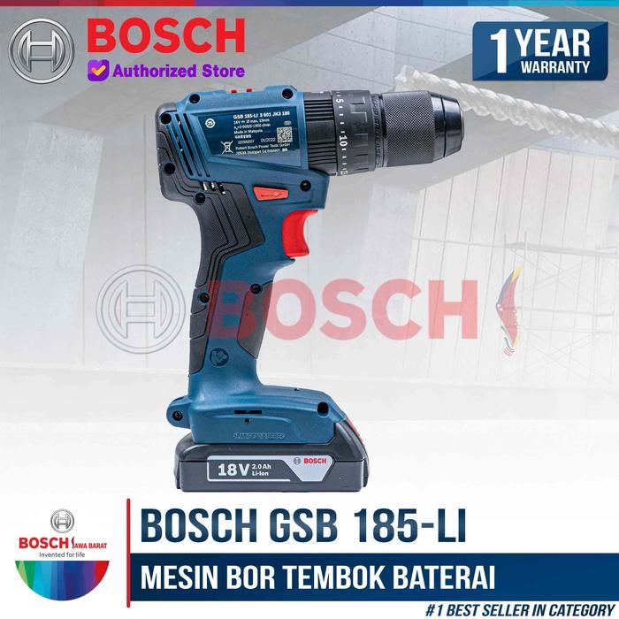 Bosch Bor Tembok Baterai Cordless GSB 185 LI 18V + Mata Bor CYL-2 3Pcs