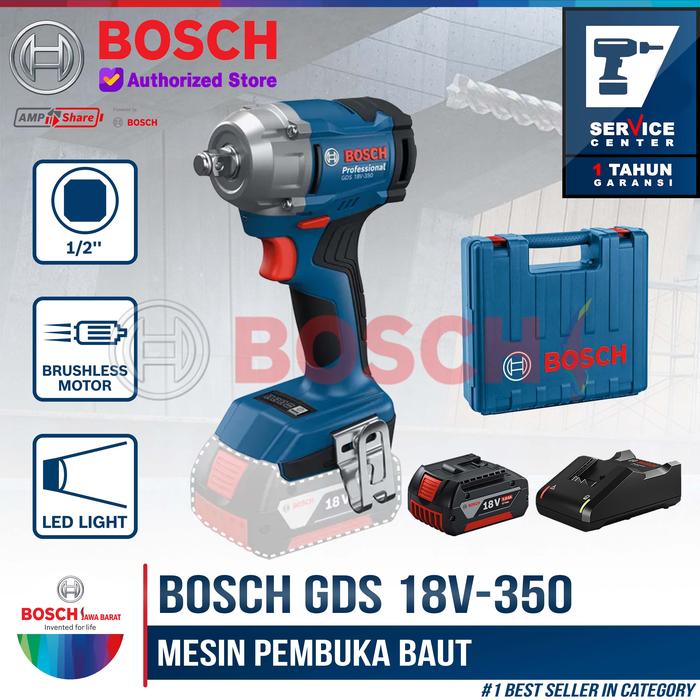 Mesin Pembuka Baut Baterai Bosch GDS 18V-350 Impact Wrench Cordless 18 Volt + Baterai 5 AH