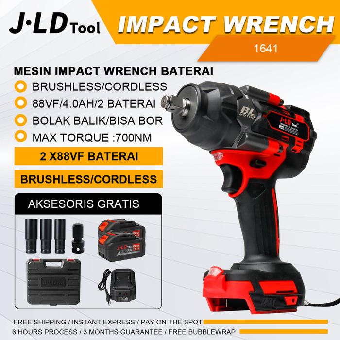 JLD 700N.m Impact Jumbo Torsi Besar Brushless Impact Wrench Cordless 3-Speed Impek Buka Baut Motor Mobil CVT Truck - 700