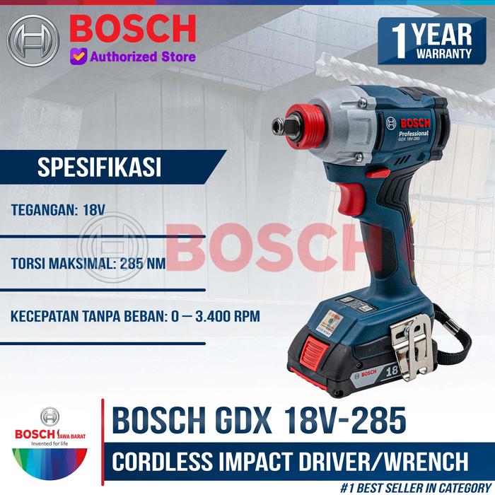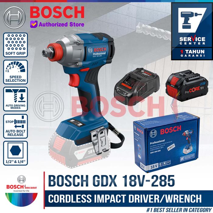 Bosch Mesin Impact Wrench Cordless GDX 18V-285 Li Charger Baterai Set Procore 8 AH