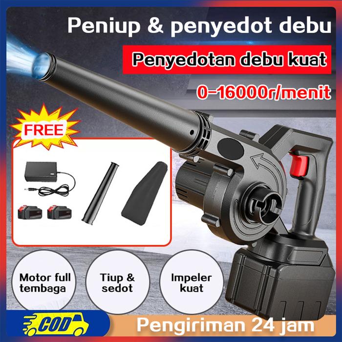 21V 2 In 1 Mesin Blower Tangan Cordless Jet Cleaner Baterai Mesin Blower - Black+1Bateri+2in1